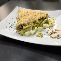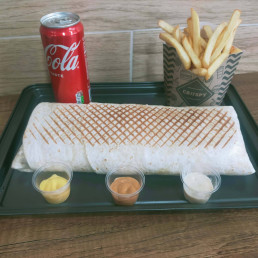 At Crêpe Canteen, you can choose from a variety of mouthwatering menu options, including the special Emmental cheese, kebab, turkey ham, raclette, and your choice of sauce. Served with fries and a 33 cl drink, this delectable crêpe is a must-try for any food enthusiast.